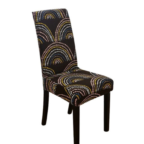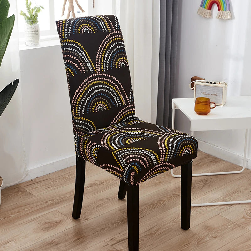 Cette housse de chaise extensible attire le regard grâce à ses arcs multicolores aux teintes vives et contrastées. Son design rythmé insuffle une énergie graphique qui habille vos chaises et redonne du caractère à votre pièce. Associée à une table en bois foncé ou à des accessoires épurés, elle transforme instantanément vos assises en points décoratifs centraux et élégants dans votre salle à manger ou salon.
