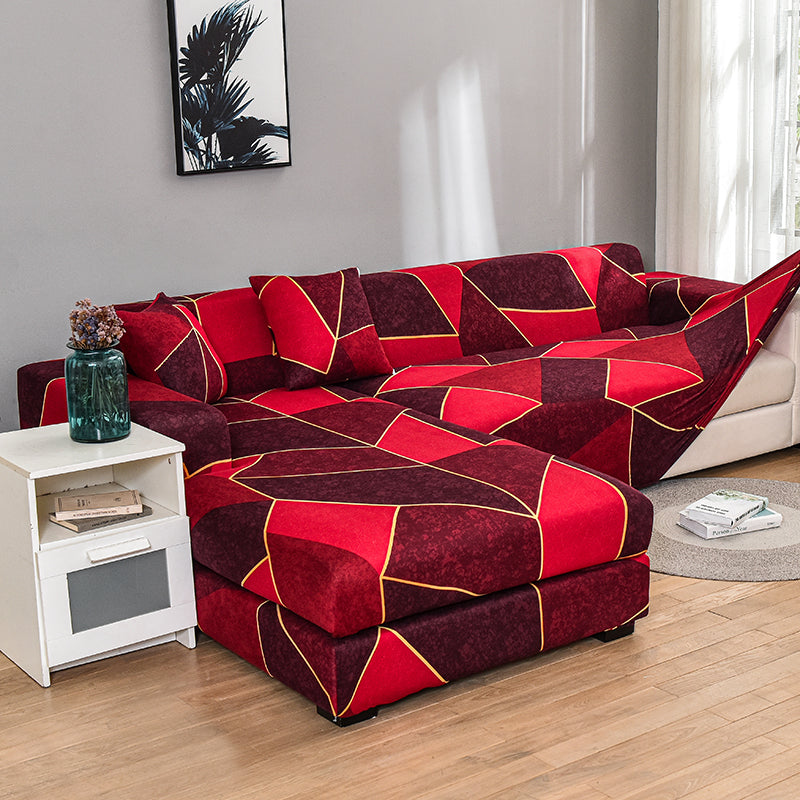 La housse de canapé géométrique rouge bordeaux apporte une ambiance chaleureuse et structurée au salon. Soulignez les volumes avec des formes graphiques marquées. Créez un décor profond et accueillant. Jouez avec la couleur pour donner du caractère, tout en conservant une lecture claire et harmonieuse de la pièce.
