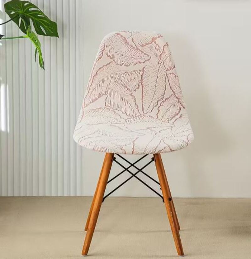 La housse de chaise scandinave végétale rose apporte une touche lumineuse à un intérieur aux tons neutres. Son dessin de grandes feuilles esquissées en rose crée un décor léger, presque poétique. Elle accompagne facilement des murs blancs, un tapis beige ou des accessoires en fibres naturelles.