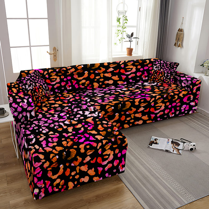 Apportez de la couleur à votre salon avec cette housse de canapé léopard rose orangé. Créez une ambiance joyeuse et expressive. Animez un décor neutre sans l’alourdir. Jouez avec les nuances chaudes et le fond sombre. Donnez du relief au canapé et transformez l’espace en un lieu vivant et accueillant.
